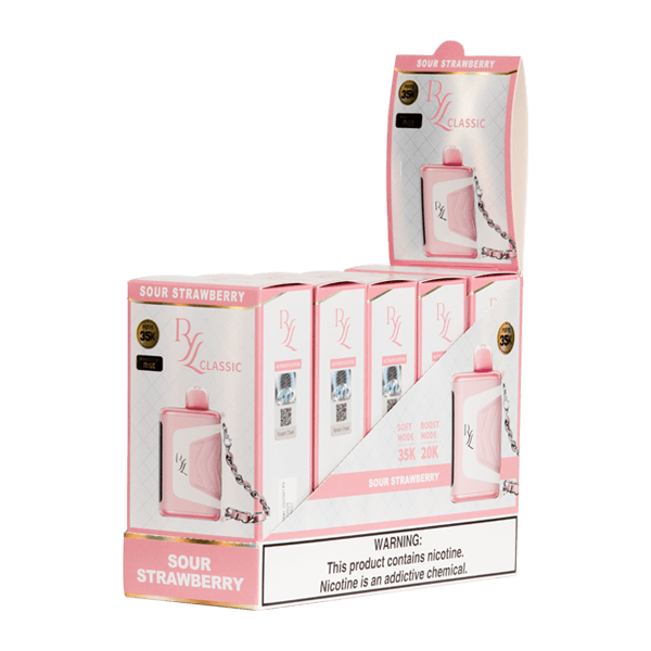 This RAZ RYL Classic 35000 Sour Strawberry vape perfectly captures the essence of sour strawberry candy! It delivers sweet strawberry flavor with the right kiss of sour to keep things lively. It’s sweet but subtle, with a tart edge, perfectly mimics the flavor of sour strawberry Raz vape